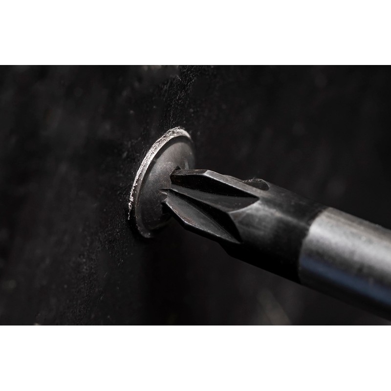 - Black self tapping screw.