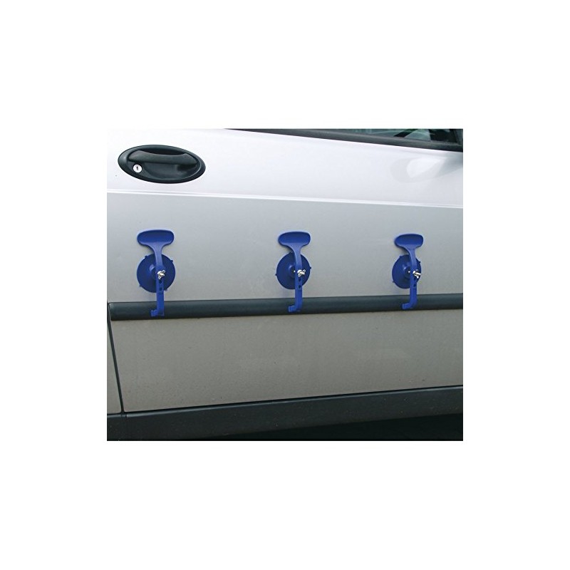 A great bodyshop time saving tool set. Secures panel trims, decals, badges, window trims, rain and light sensors during preparation stages or while waiting for adhesives to set. Non-marking, composite construction with adjustable reach and clamp.