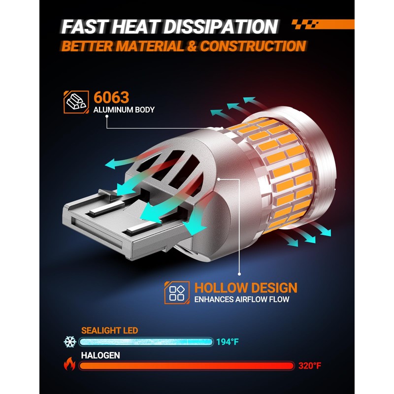 • 【60,000 Hours Longevity】This 7440 7443 7444na led bulb amber made of aircraft grade aluminum and great solid connection with the socket,Its high-end appearance seamlessly matches the original car's design, and with a lifespan of up to 60,000 hours