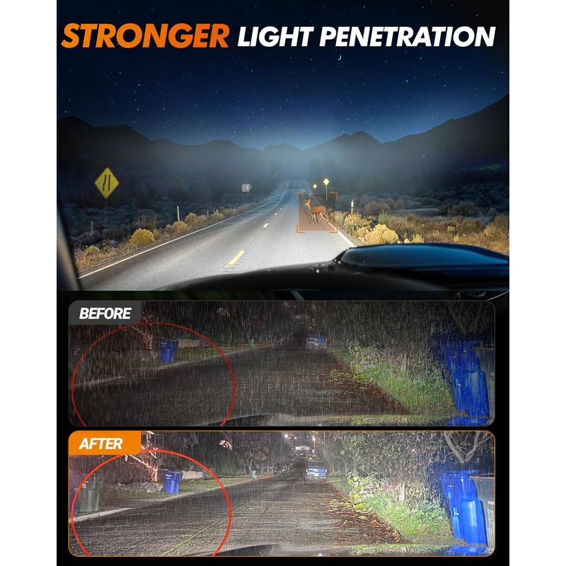 - Exceptional Brightness: Illuminate the road with 10,000 lumens of bright white light (6500K), providing 600% more brightness than standard bulbs. Ideal for challenging weather conditions like fog, rain, and snow