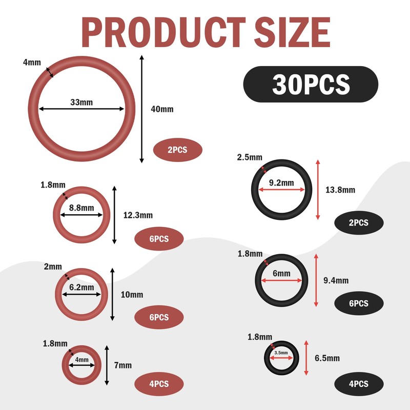 • Rich box contents: you will receive 30 sealing rings in a storage box. There are different colors and sizes, such as 6 pieces red 8.8mm inner diameter, 6 pieces black 9.2mm inner diameter and more, to meet the needs of different components.