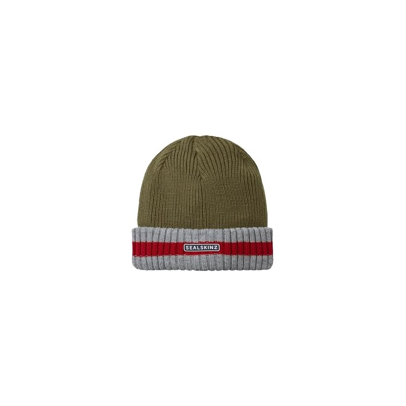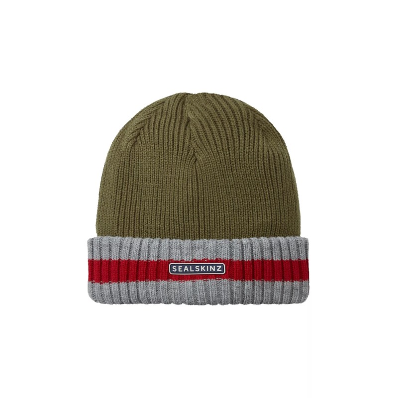 SEALSKINZ | Holkham | Unisex Waterproof Cold Weather Striped Roll Cuff Beanie Hat | for Everyday & Outdoor Activities | Warm Fleece Lining | Three-Layer Insulation Technology Olive