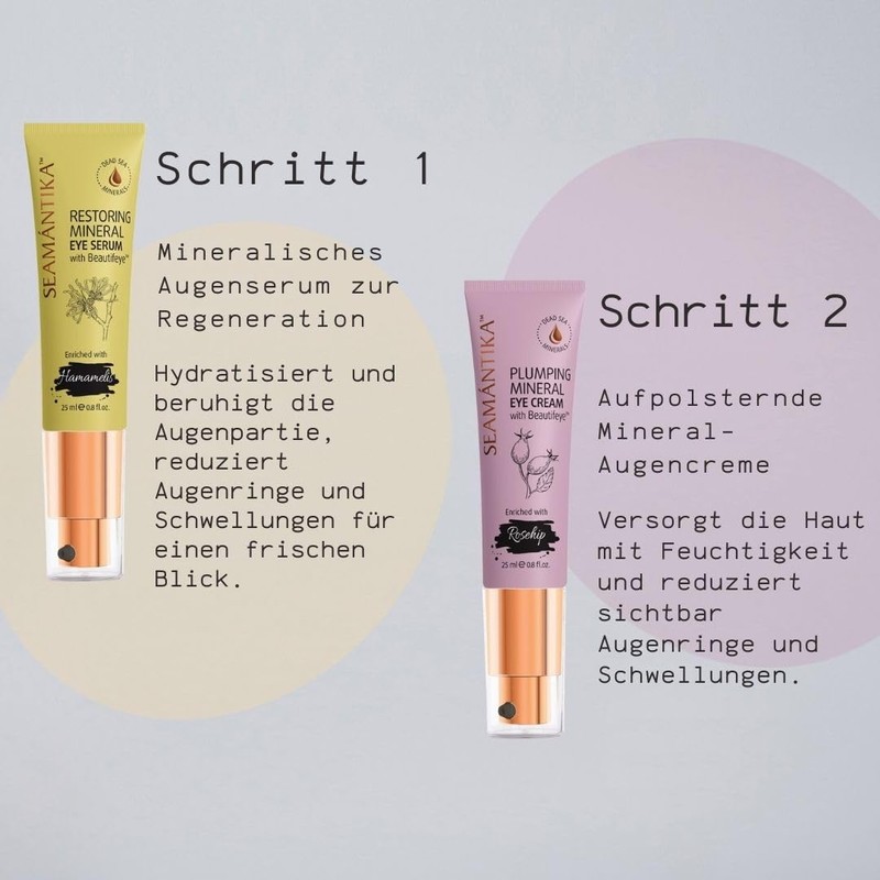 - Mineralien aus dem Toten Meer: Die Mineralien revitalisieren und erhellen die Haut, sorgen für eine gesunde und strahlende Augenkontur.
