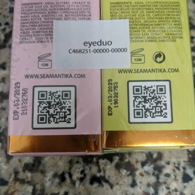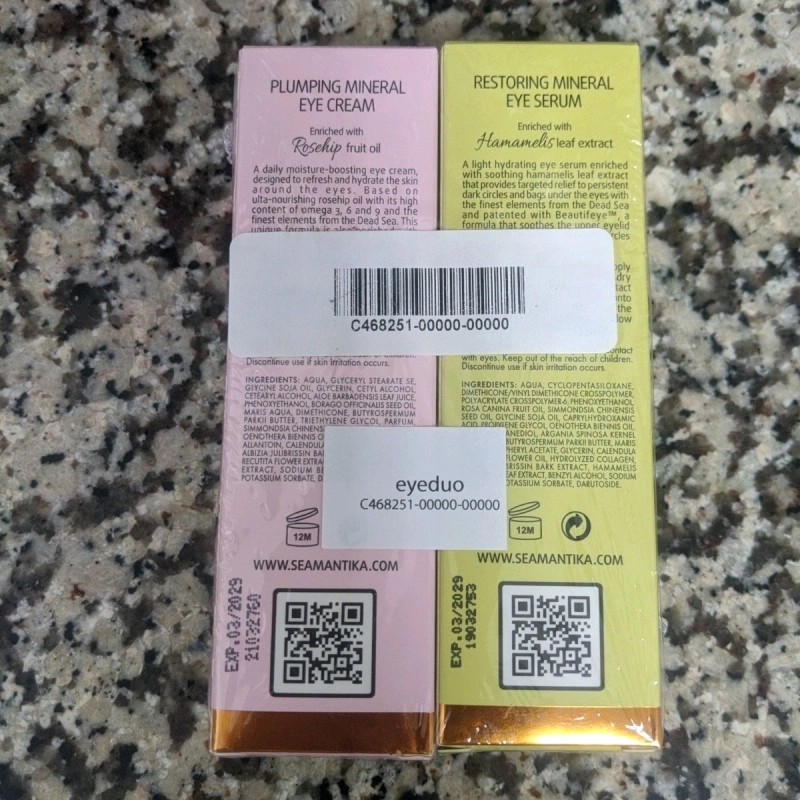 Seamantika duo set restoring mineral eye serum and plumping mineral eye serum. 25ml each or .8 fl oz each. New sealed in package. See photos for expiration date and ingredients.