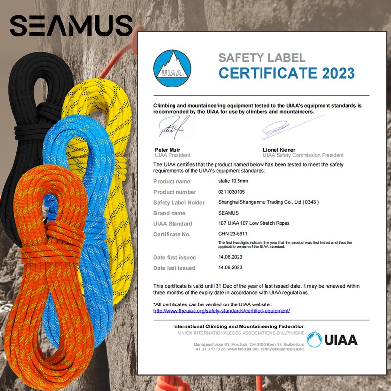 SEAMUS Static Rope 11mm UIAA Rappelling Rope 15M (50ft) Static Line Nylon Kern Mantle Rope for Rock Climbing, Mountain Tree Climbing, Hauling, Rescue