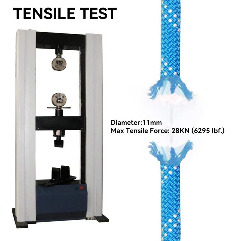 - UIAA CHN 23-6612, CE EN 1981 Type A: Diameter: 11mm, Strength:28kN (6295 lbf.), Grams Per Meter: 84g, Weight Per 100ft: 5.65 lbs., Sheath Mass: 34%, Static Elongation: 3%