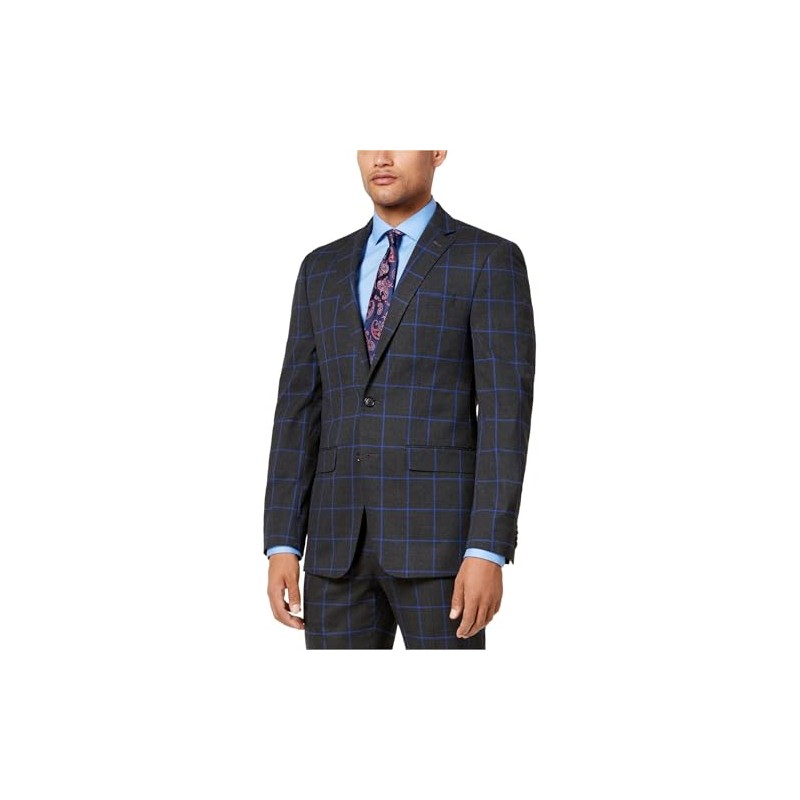 Sean John Mens Windowpane Slim Two Button Blazer Jacket, Grey, 36 Short