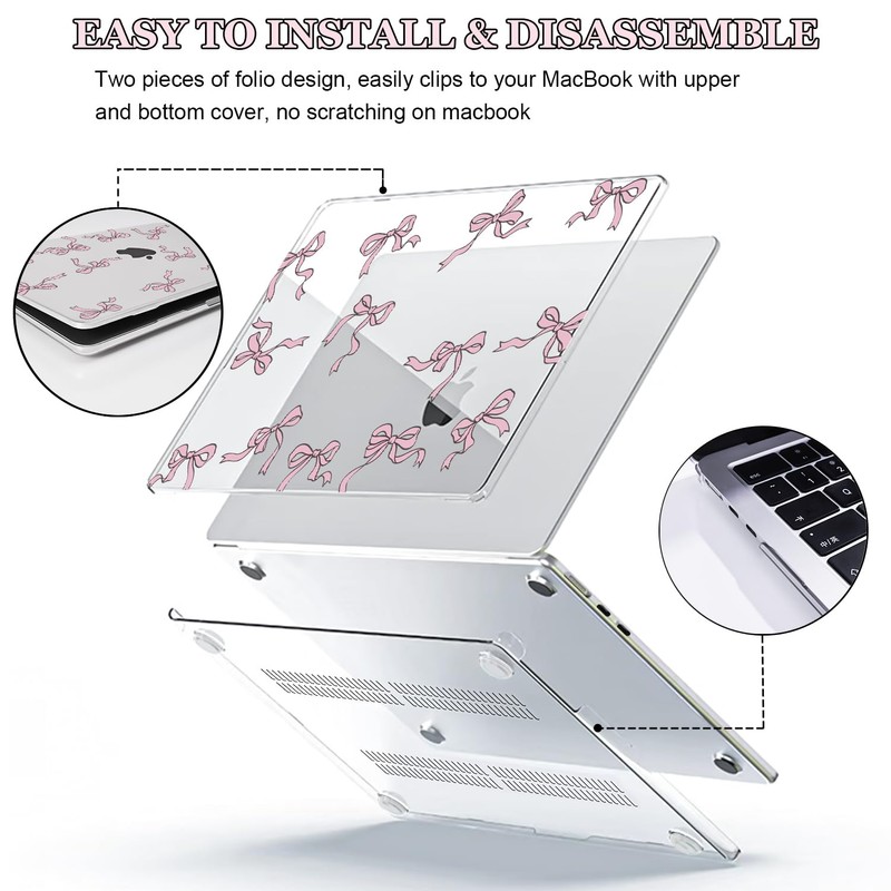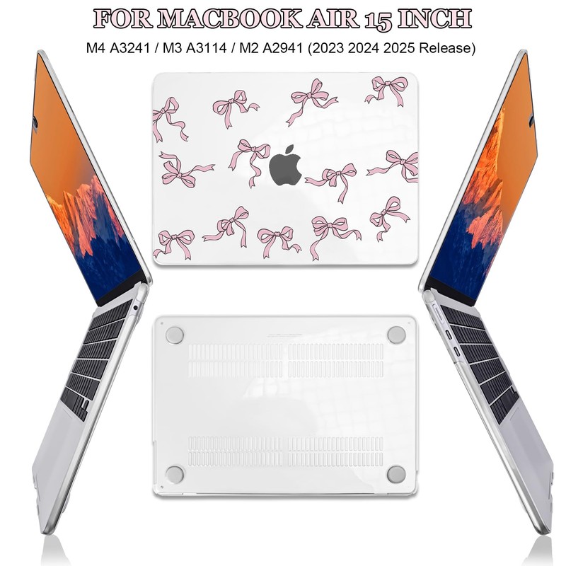Seanai for M4 MacBook Air 15 inch Case A3241 A3114 M3 A2941 M2 2025 2024 2023 Release, Clear Pattern Plastic Hard Shell Cover for MacBook Air 15.3 with Liquid Retina Dispaly Fits Touch ID, Bowknot