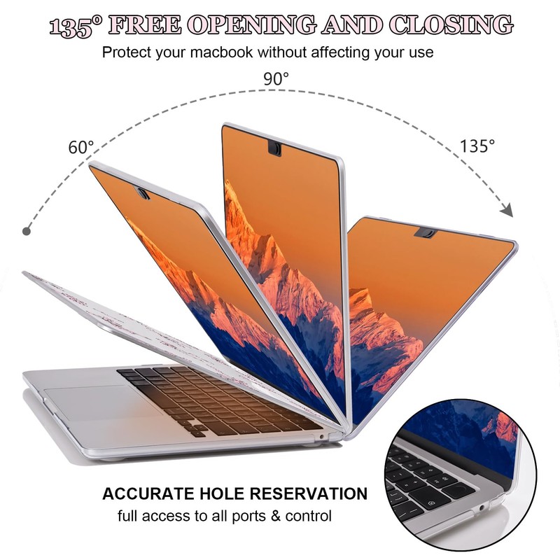 Package Include: pattern plastic hard shell case for macbook air 15 inch M4 M3 M2 Chip + keyboard cover skin + screen protector + dust plug + webcam cover