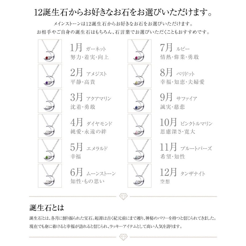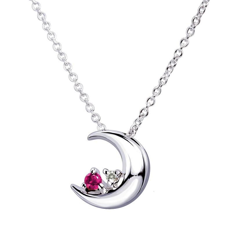 - This moon motif necklace with birthstone and diamond set is recommended as a gift for birthdays and other anniversaries. Sparking twin stones shine on a plump moon. The ever desired diamond and your birthstone glitters just like stars in the night sky.A very sexy moon necklace that can enhance the adult charm.Even at this small size, it makes a strong presence.Absolutely recommended as a gift! Wouldn’t you like to bring joy to that special person with a cute teddy bear sticking its legs out of an exclusive gift bag?