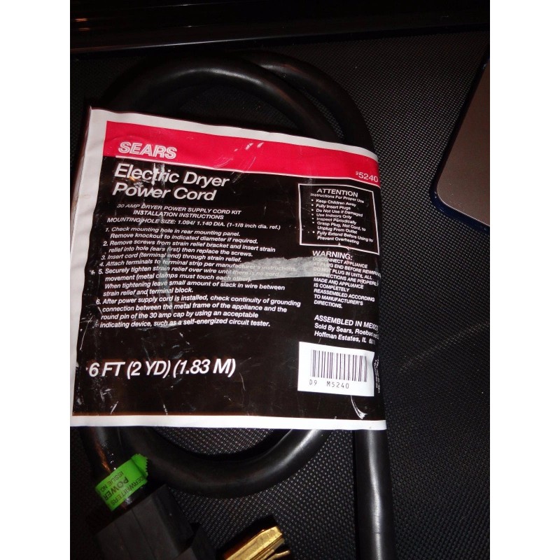Sears New Sears Electric Dryer Power Cord 30Amp 4 wire 6Feet - 95240