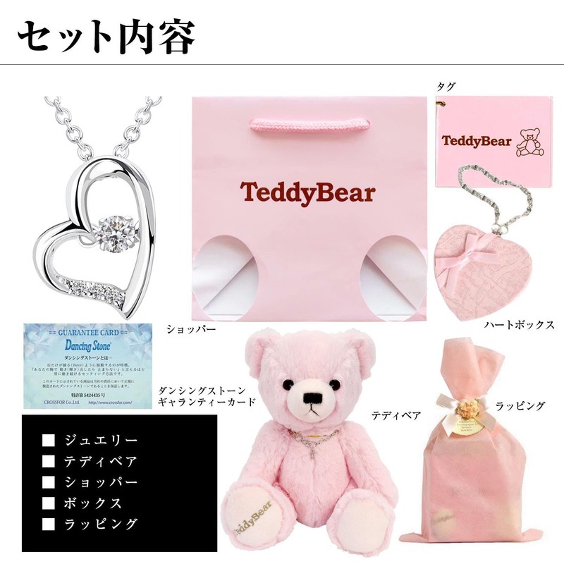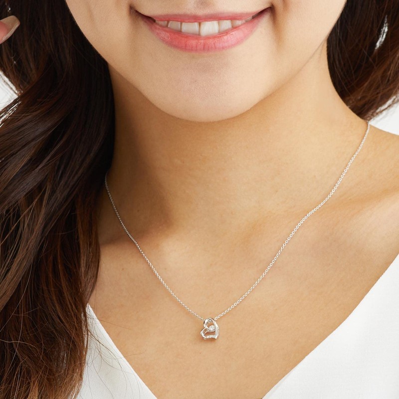 Sears sp10-0001-tdt-01 Dancing Stone Open Heart Necklace with Teddy Bear, Silver, Cubic Zirconia