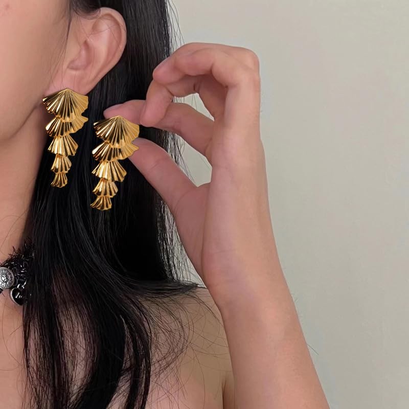 - 【Statement Dangle Style】- Our Gold Shell Earrings measure approximately 1.7 inches in length, creating a long, dangling effect that adds a touch of drama and flair to any outfit. Perfect for beachy summer styles.