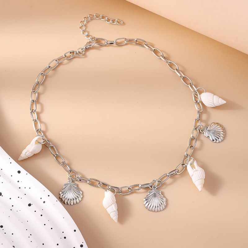 Seashell Necklace for Women, Conch Necklace,Beach Jewelry for Women, Ocean Theme Adjustable Choker, Summer Festival Fashion Accessories (Silver)