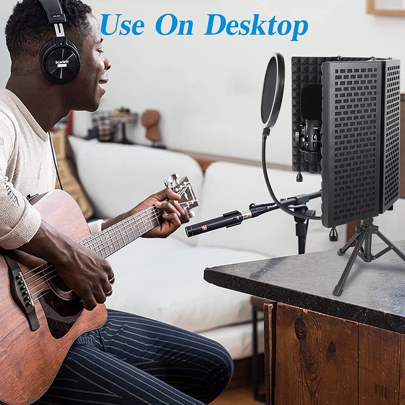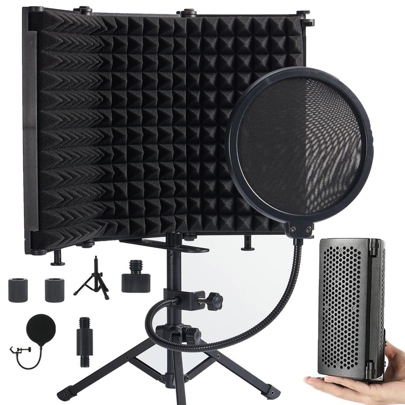 - 🎧Diseño plegable ajustable: 3 paneles plegables ajustables de gran ángulo de 150° que te permiten crear el mejor efecto de aislamiento acústico y reducción de ruido. La mochila plegable (largo x ancho x alto: 140 x 120 x 255 mm) es ligera de llevar. Sin una configuración complicada, es fácil de configurar y comenzar a grabar de manera eficiente en cualquier lugar, como en un estudio de grabación.