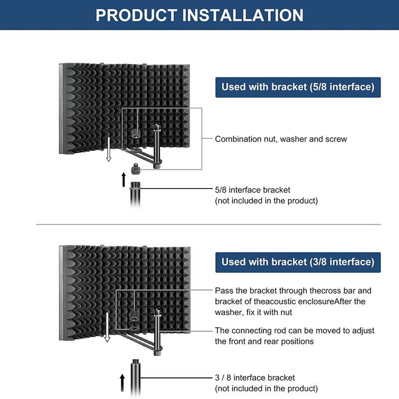 - 🎸Multifuncional:La cubierta de aislamiento del micrófono se puede fijar en la encimera o mesa con el trípode de escritorio.También se puede usar con la barra de soporte y los tornillos para instalar el micrófono en el kit, o se puede usar con el brazo de suspensión del micrófono. . El filtro pop del micrófono puede ayudarlo de manera efectiva a reducir el ruido y la protección pop, y puede combinarlo con la cubierta de aislamiento del micrófono.