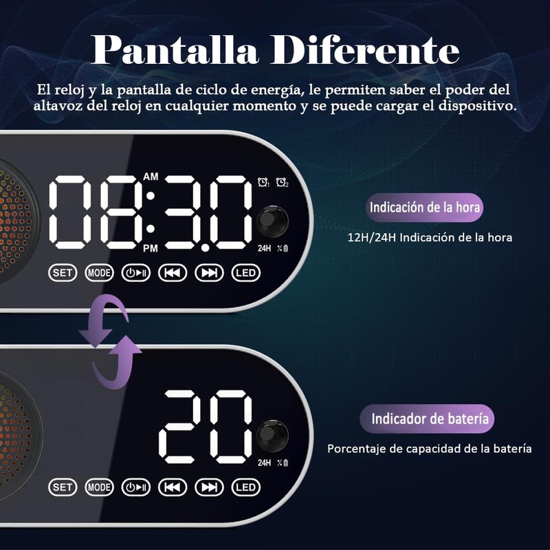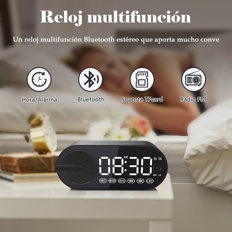 - MULTIPLES MODOS DE REPRODUCCIÓN: Este altavoz despertador adopta la conexión Bluetooth, por lo que puede reproducir de forma inalámbrica su música favorita en su teléfono. Además, puede disfrutar de la música con una tarjeta de memoria (no incluida).