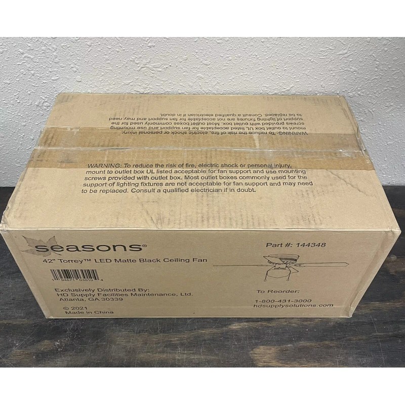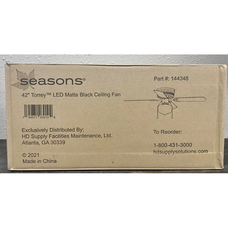 Seasons 42 in. Torrey LED Matte Black Ceiling Fan With Light #144348