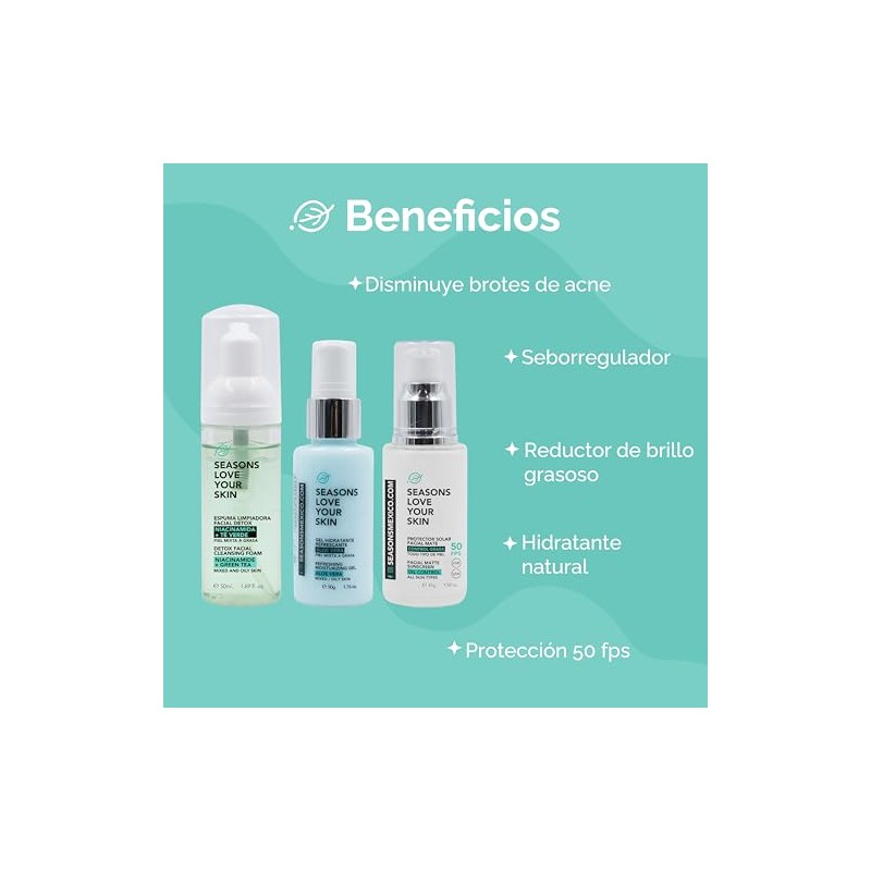 SEASONS LOVE YOUR SKIN - Seasons love your skin Kit Rutina Facial Skincare Control Grasa Tratamiento Antiacné | Espuma limpiadora Facial + Hidratante Aloe Vera + Bloqueador Niacinamida. 💎 Fórmula premium para resultados visibles y duraderos. Ingredientes naturales seleccionados y testado dermatológicamente. ⏰ Oferta por tiempo limitado. Ideal para quienes buscan lo mejor en calidad y estilo. Producto auténtico con satisfacción total asegurada. ¡No te quedes sin el tuyo y aprovecha esta oportunidad única!