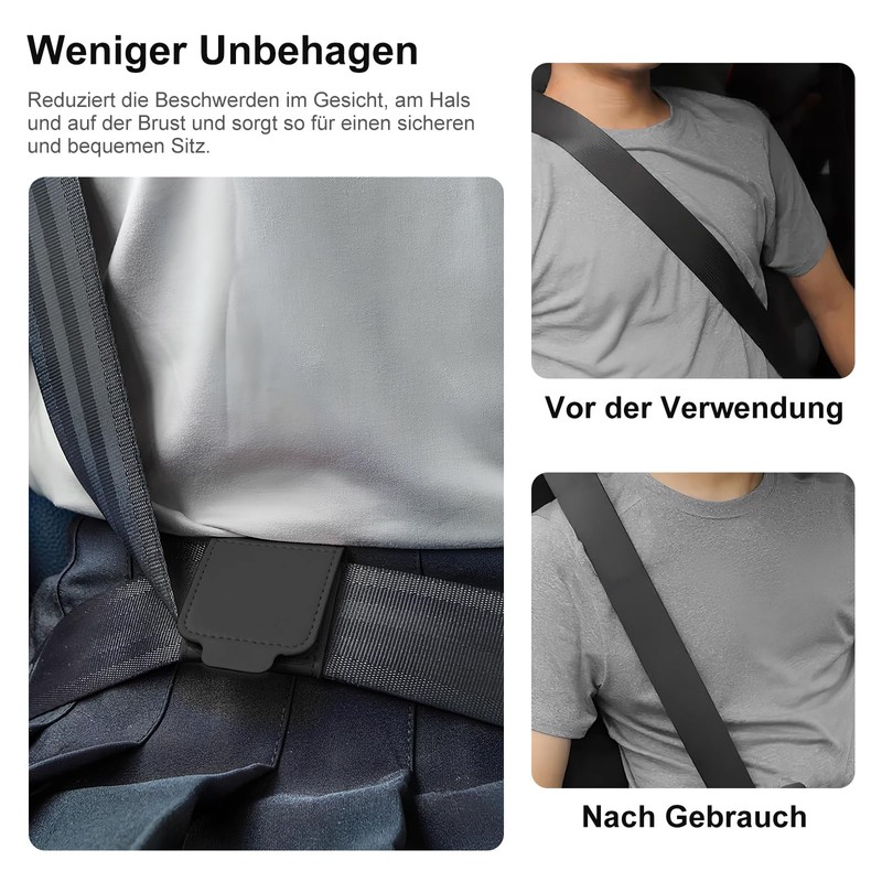 - Good compatibility: Our seat belt adjuster is suitable for all car seat belts such as cars, SUVs, vans, trucks, buses, etc. The approx. 5 cm wide seat belt positioner is suitable for all standard belt widths. Perfect to ensure a comfortable sitting position for adults, pregnant women and children.