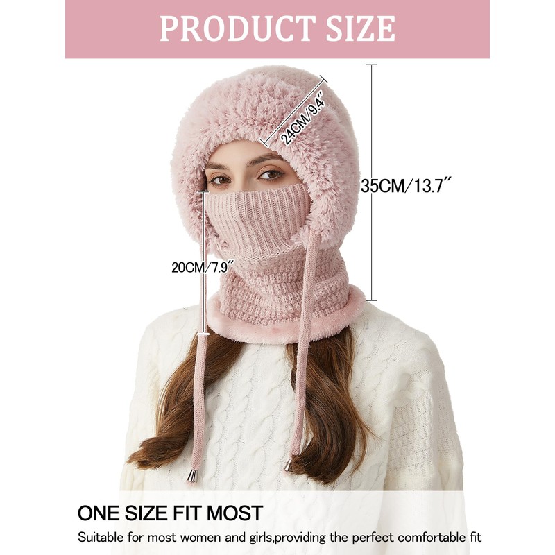 SEAUR Mask Knit One-Piece Hat for Women Winter Warm Ski Fleece Balaclava with Scarf Slouchy Elastic Thick Beanie Cap Ear Neck Protection Pink M
