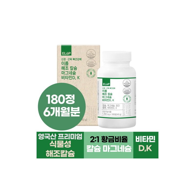 Seaweed calcium magnesium vitamin DK beneficial for nerve muscle bone health, 180 tablets, 1 piece / 신경 근육 뼈건강에 이롭 해조 칼슘 마그네슘 비타민D K, 180정, 1개
