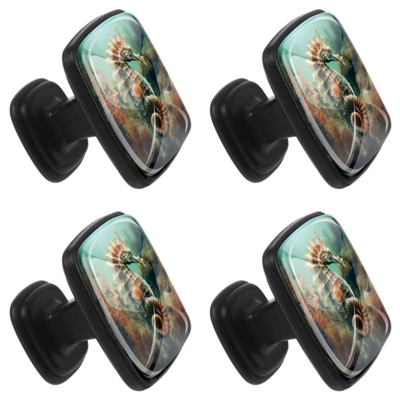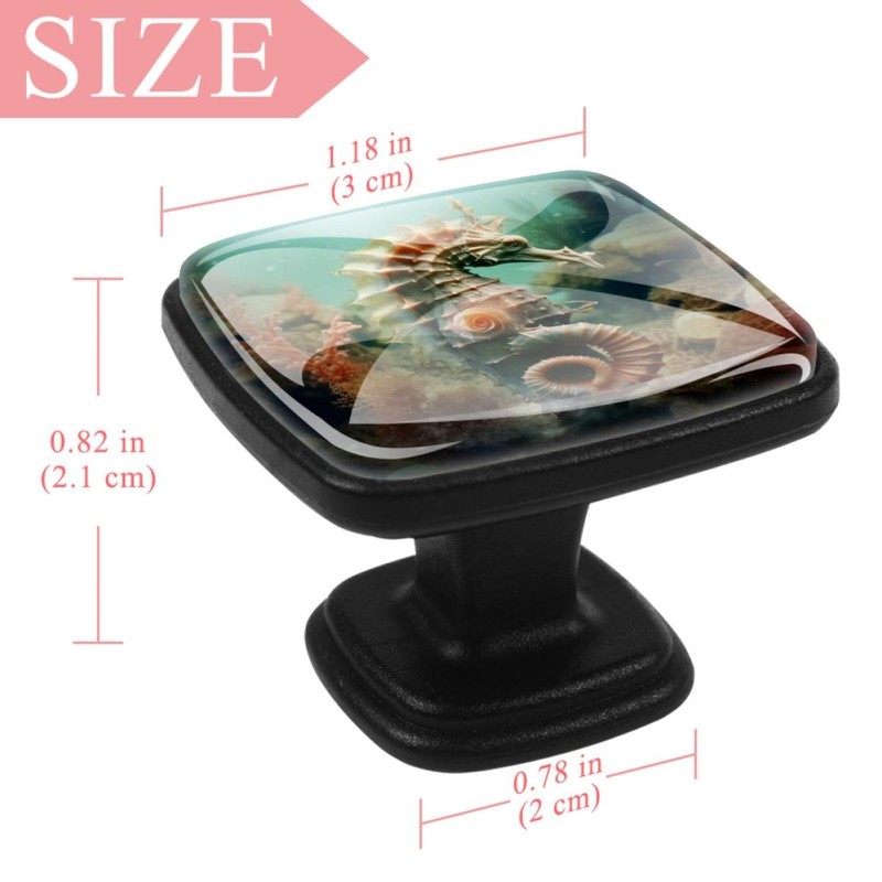 Seaworld Seahorse Coral Reef 4 Pack Crystal Glass Cabinet Drawer Knobs, Clear Square Pull Handles for Durable Furniture Hardware