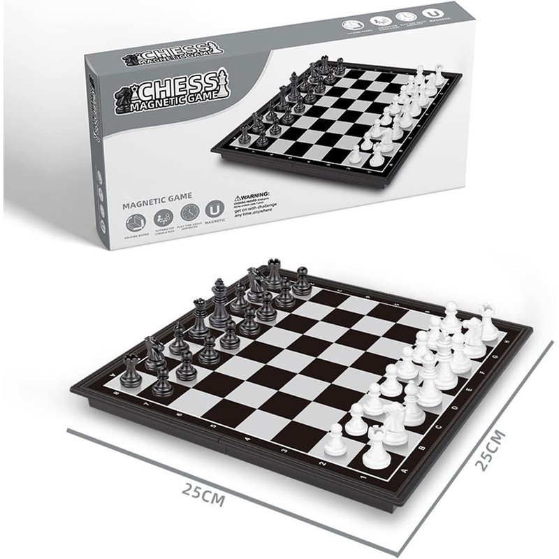 - Portable Size : Open size of Chessboard is 25*25*3 cm, while folded size is 25*14*6 cm. This perfectly sized Chessboard is small enough to travel with, but also large enough to play comfortably.