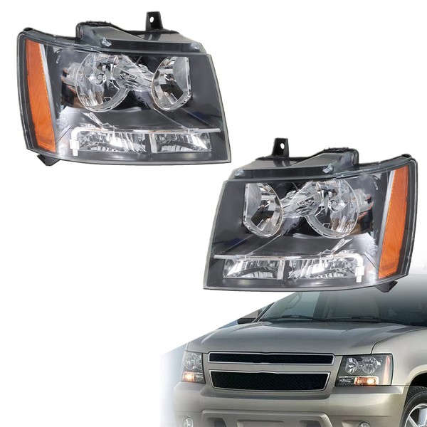 SEBLAFF Halogen Headlight Assembly Headlights with Clear Lens Amber Corner Left & Right Side Replacement for 2007-2014 Tahoe Suburban Avalanche