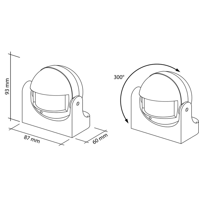 - The swivelling motion detector can also be adjusted according to the ambient brightness (between 3 and 2,000 LUX).