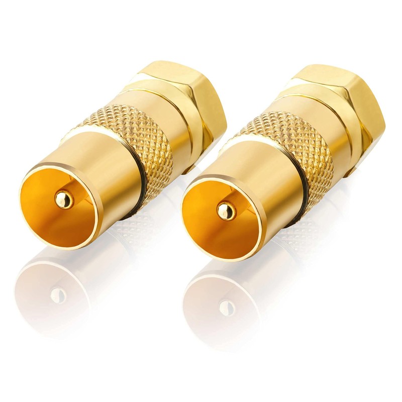 • An adapter consists of a male F-connector and a male coaxial plug (antenna plug IEC).