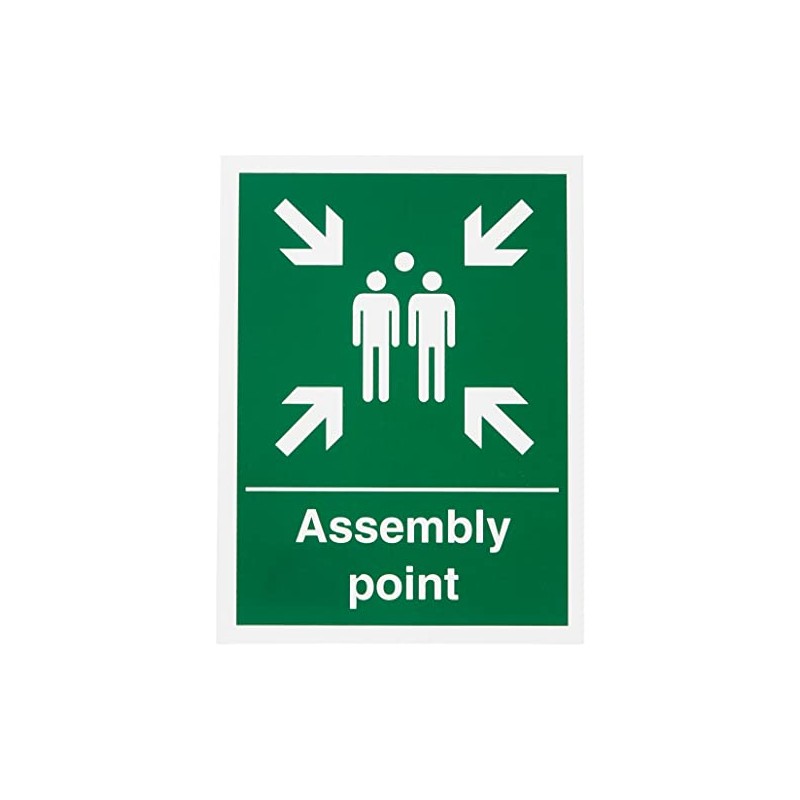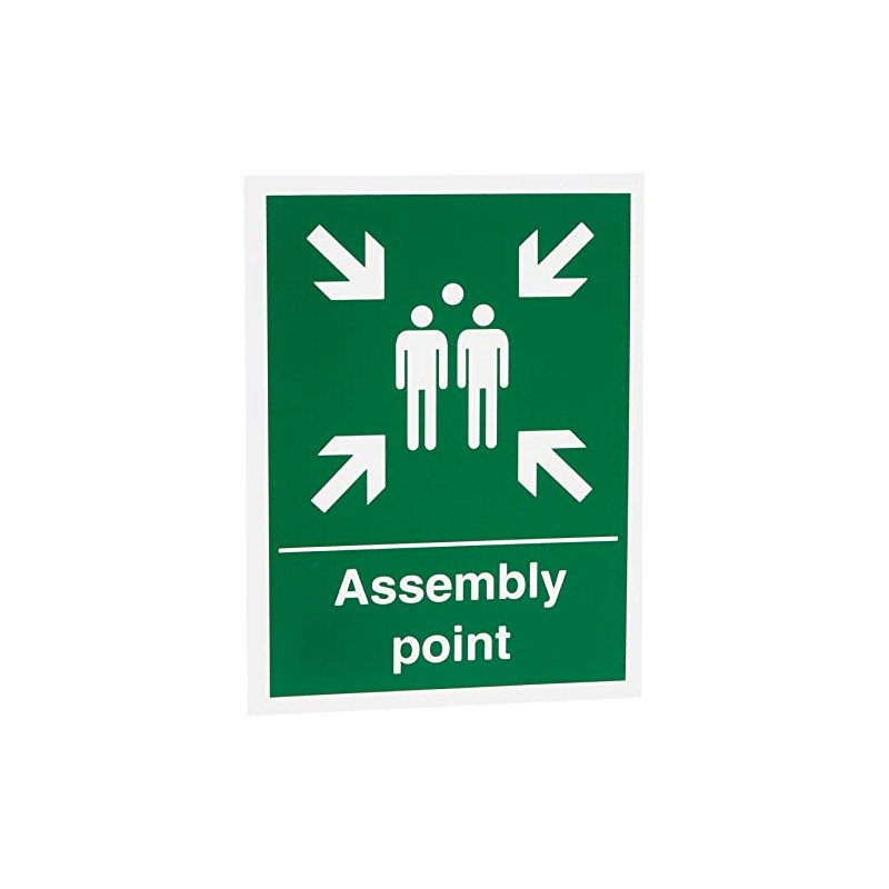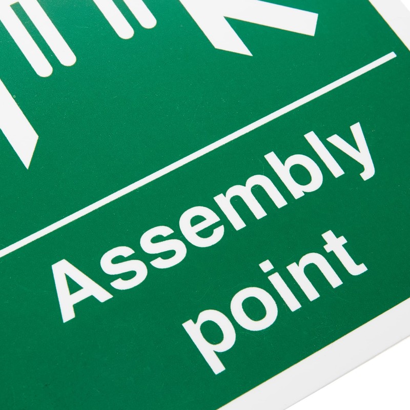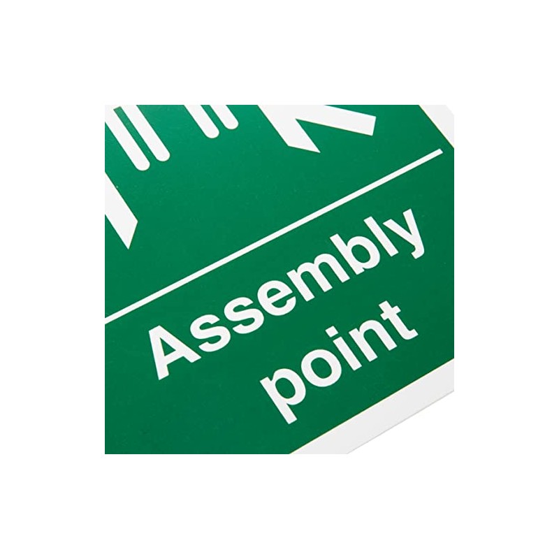 - Safe Procedure green and white self adhesive semi rigid plastic sign Assembly Point