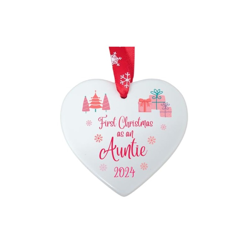 Second Ave First Christmas as an Auntie White Ceramic Hanging Heart Christmas Xmas Tree Decoration Bauble