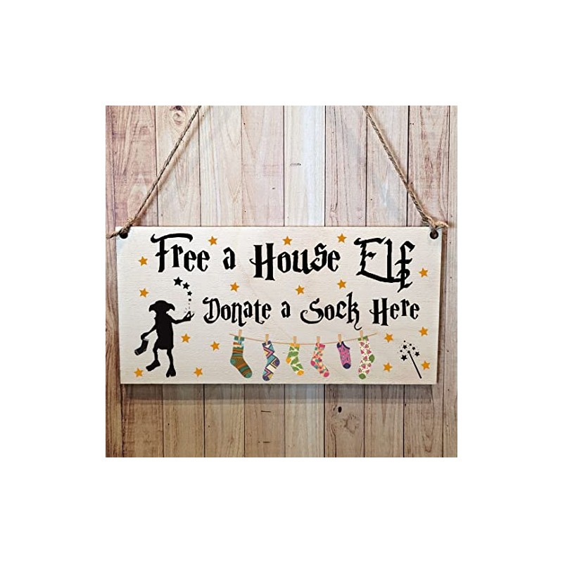 Second Ave Free A House Elf Donate A Sock Wooden Hanging Gift Rectangle Decoration Sign Plaque