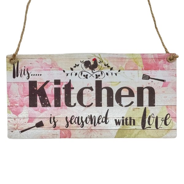 Second Ave Kitchen Seasoned With Love Wooden Hanging Rectangle Home Kitchen Family Sign Plaque