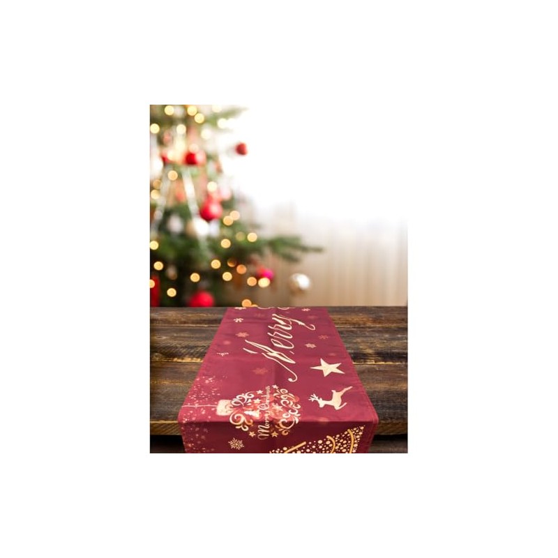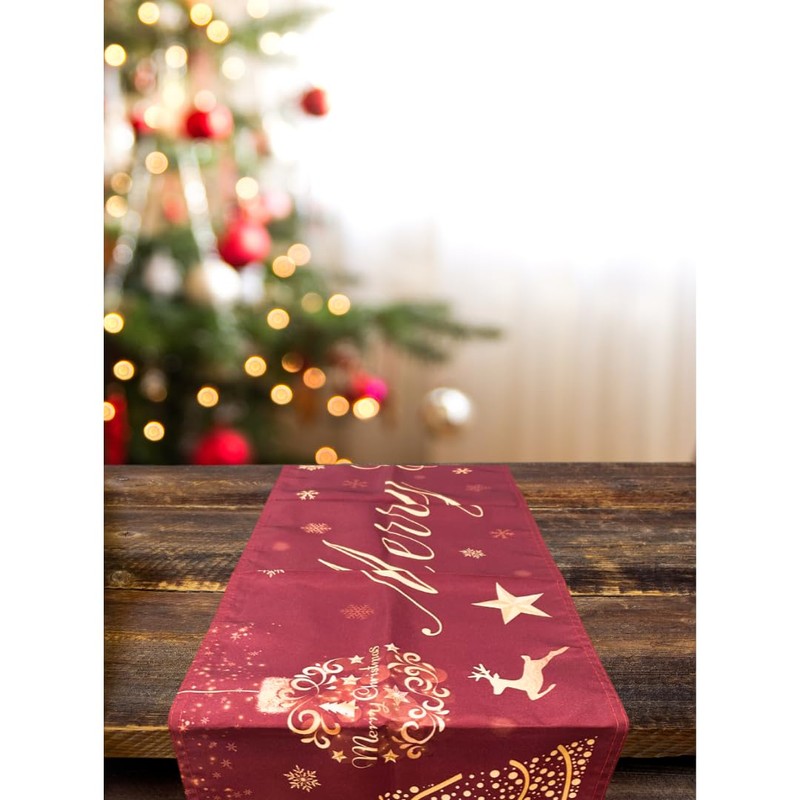 Second Ave Red & Gold Christmas Table Runner Dining Table Kitchen 180cm x 32cm Decoration Merry Xmas Festive Decoration