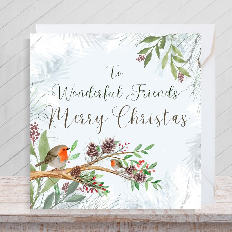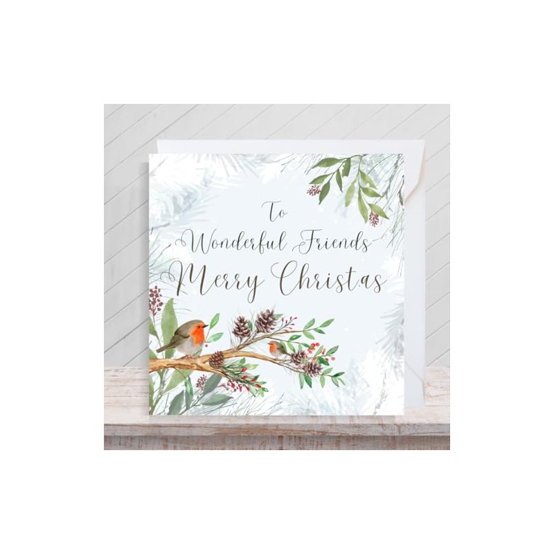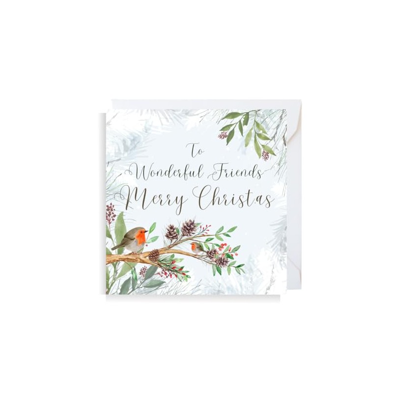 Second Ave Wonderful Friends Christmas Robin Square Xmas Holiday Festive Greetings Card