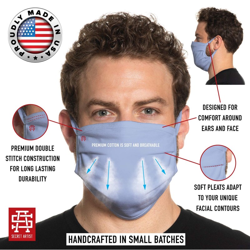 - EASY TO WASH AND DRY: Reversible and reusable cloth face masks are made for multiple uses. We have wash tested our reusable face mask and after 60 cycles, it looks and feels fantastic. Our cloth face mask is washable and dry-able and is made for longevity. Secret Artist face masks will give you peace of mind, covering both the nose and mouth.