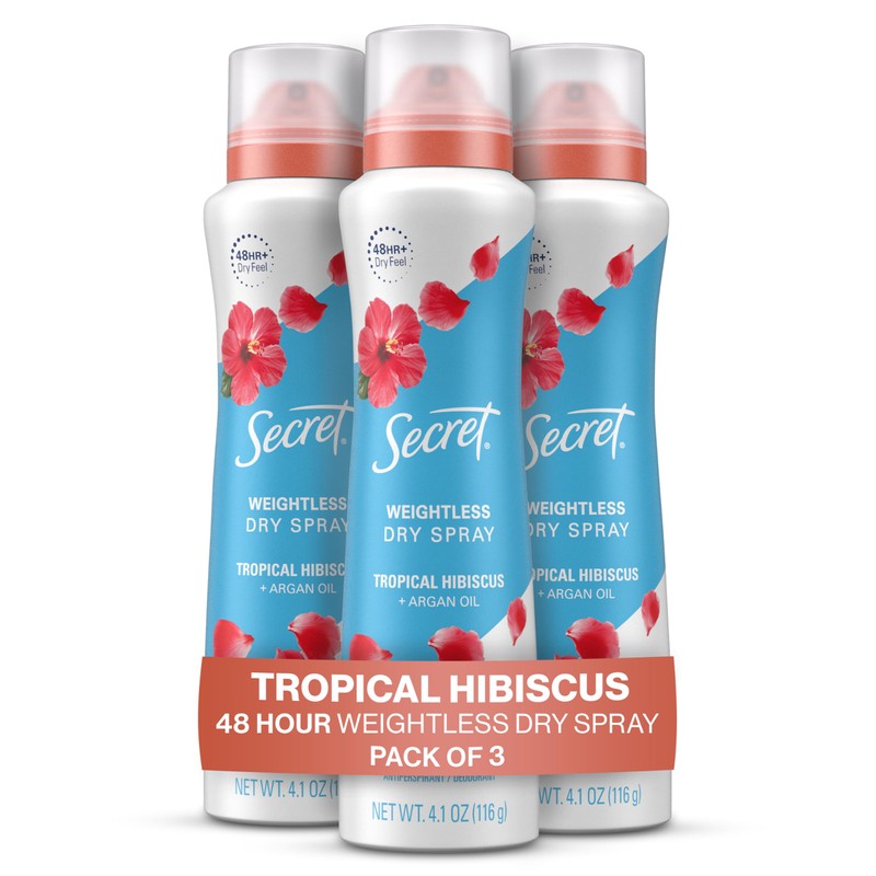 Secret Dry Spray Antiperspirant Deodorant, Tropical Hibiscus, 4.1 oz (Pack of 3)