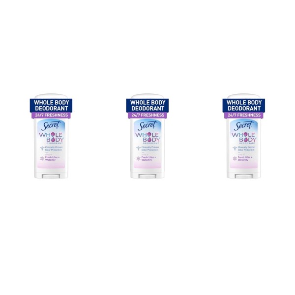 secret whole body Lilac & Waterlily Aluminum Free stick deodorant 2.4 oz 3 pack