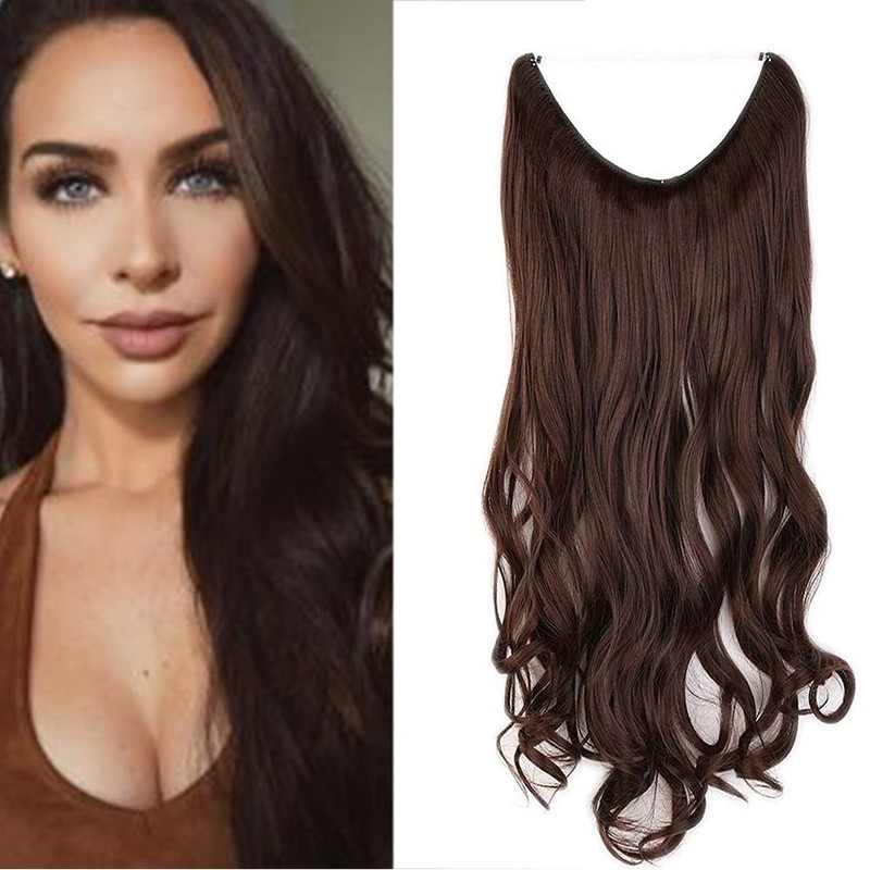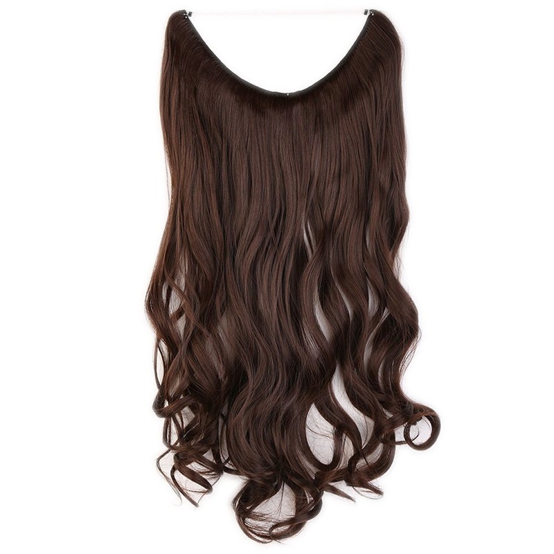 Secret Wire Hair Extensions 20" Curly Wire In Hair Extensions Synthetic One Piece Hair Extension Invisible String Hairpiece Heat Resistant - Medium Brown