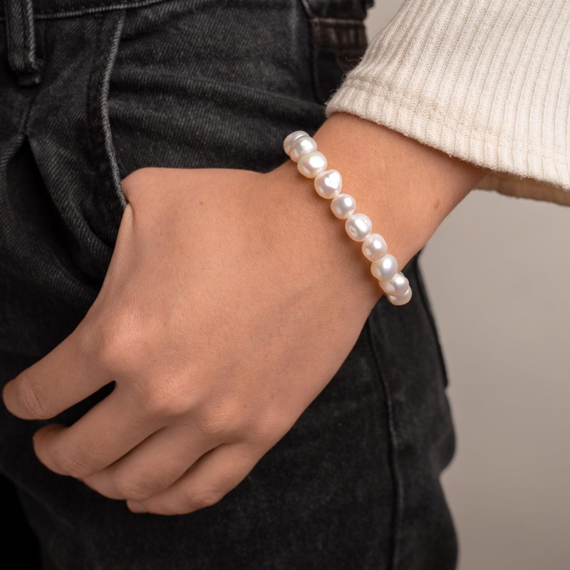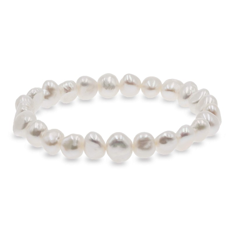 Secret & You | White and Coloured Baroque Pearl Bracelet, 8-9mm Diameter, Freshwater Cultured Pearls | 22 Total Pearls | Elastic Bracelet, Silver, White