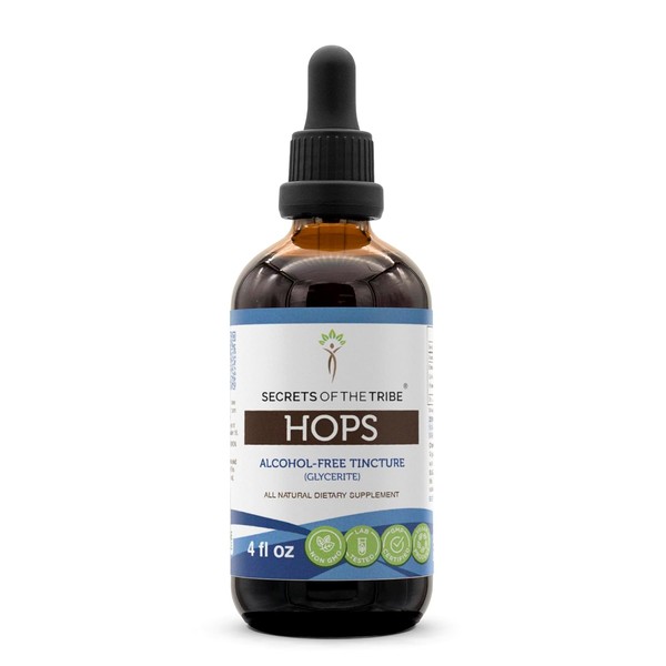 Secrets of the Tribe Extracto líquido sin alcohol de tintura de lúpulo, flor seca de lúpulo (Humulus Lupulus) (4 onzas líquidas)