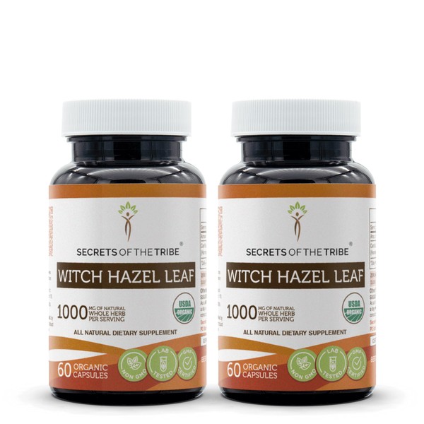 Secrets of the Tribe Witch Hazel Leaf 2x60 Capsules, Made with Vegetable Capsules and USDA Organic Witch Hazel Leaf (Hamamelis virginiana) Dried Leaf (2x60 Capsules)