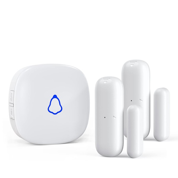 - Easy Installation-- All hardware is in package. Just plug the wireless magnetic door chime receiver into any standard outlet and tear the double-sided adhesive tape which on the back of door sensor alarm( or screw mounted) and stick them to the door or window is fine. Please take the insulating paper away before using the wireless door and window open sensor alarm chime.