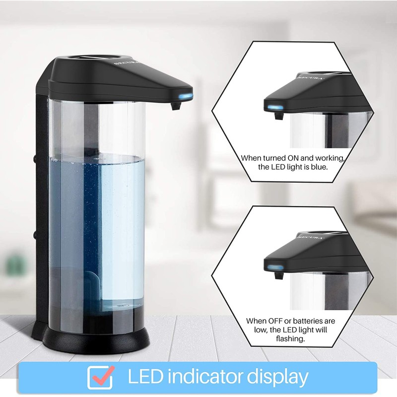 - IPX 4 battery-operated automatic soap dispenser with 17 oz. capacity container. The 4*AA alkaline batteries are not included.