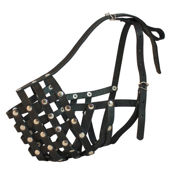 Secure Leather Mesh Basket Dog Muzzle - Rottweiler Male(Circumference 14.5", Snout Length 3.5")