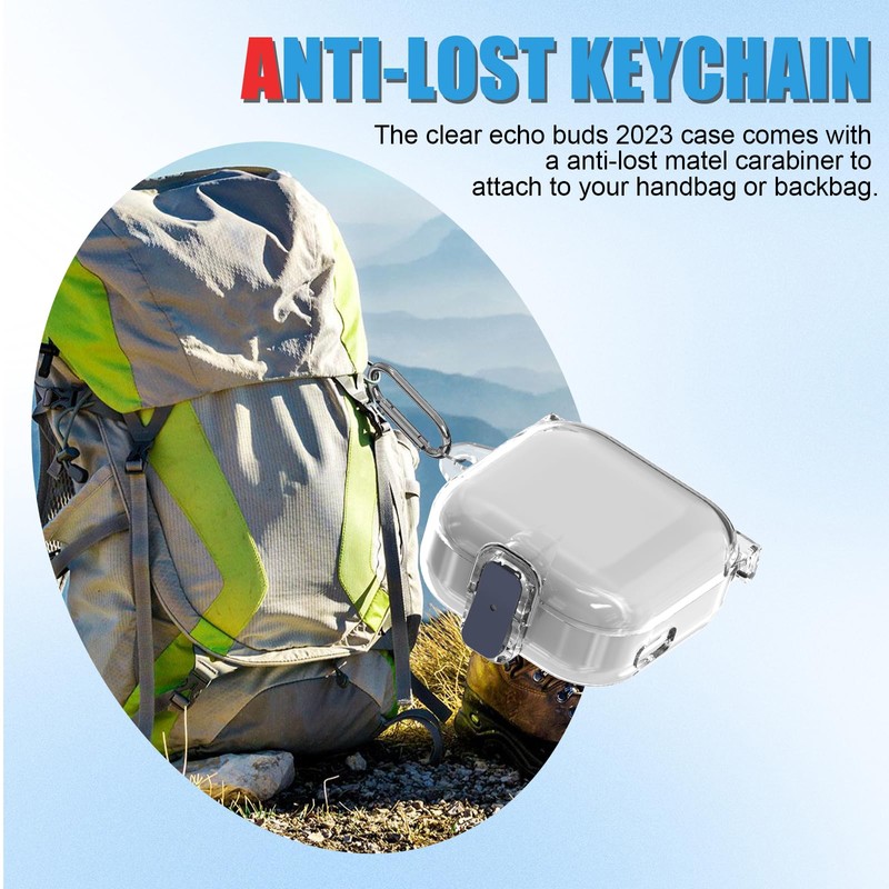 - 【Compatibility】This clear case cover with safety lock is ONLY compatible with Echo Buds 2023/ All-new Echo Buds (2023 Released), not compatible with other device.