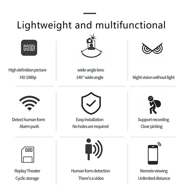 1、HD IMAGE: The camera ensures that you can get high definition surveillance images to keep your family safe, and bring you an excellent visual experience. 2、PERFECT PROTECTION: The camera has a 24 hour monitoring function, providing you with all weather home protection, reliable and useful. 3、REMOTE VIEWING: With the mobile app, you can remotely view the real time images and recordings of the camera anytime and anywhere. 4、WIDE ANGLE: The camera has a 90° wide viewing angle, which can cover a large area and monitoring without dead angle, convenient for you to view details. 5、SMART DESIGN: The camera has motion detection and cell phone remote function, the intelligent design perfectly meets your needs, is your essential home security system.