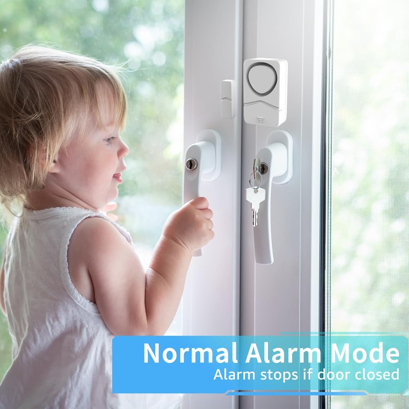 - 【Extra Loud Alarm】 This door and window alarm can instantly detect any movement of your door or window. The door and window burglar alarm has a loud alarm of up to 110dB, effectively scaring away potential burglars and also preventing children or pets from going out without notice. It can also alert you when an elderly person, guest or sleepwalker opens the door.